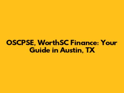OSCPSE, WorthSC Finance: Your Guide In Austin, TX
