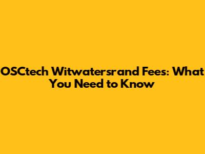 OSCtech Witwatersrand Fees: What You Need To Know