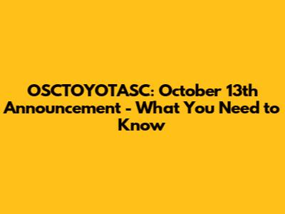 OSCTOYOTASC: October 13th Announcement - What You Need To Know