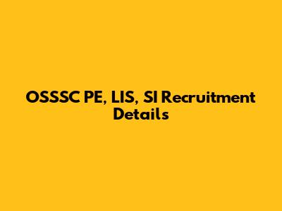 OSSSC PE, LIS, SI Recruitment Details