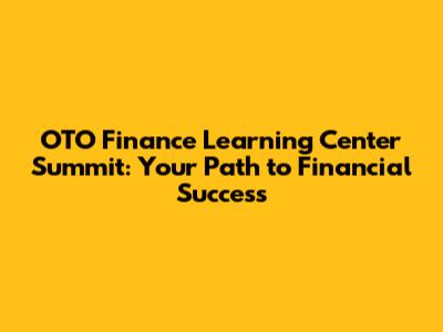 OTO Finance Learning Center Summit: Your Path To Financial Success