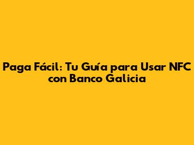 • ¿Qué hago si tengo problemas con el pago con NFC? Si tienes algún problema con el pago con NFC, contacta al servicio de atención al cliente de Banco Galicia. Ellos te ayudarán a solucionar el problema.