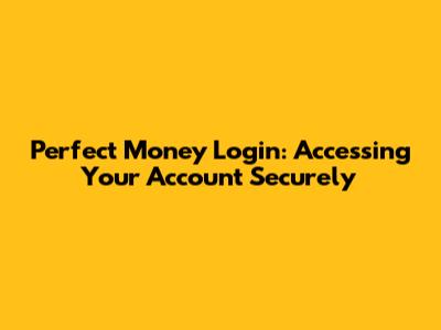 Perfect Money Login: Accessing Your Account Securely