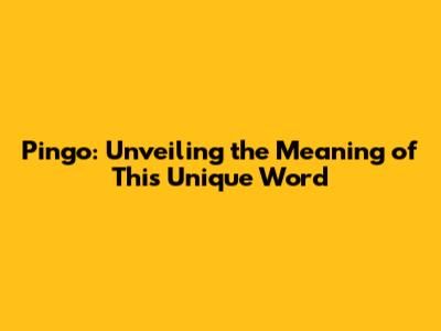 Pingo: Unveiling The Meaning Of This Unique Word