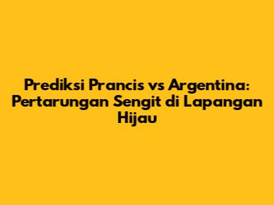 Prediksi Prancis vs Argentina adalah pertandingan yang sulit untuk diprediksi. Kedua tim memiliki kekuatan yang seimbang dan peluang yang sama untuk meraih kemenangan. Pertandingan ini diprediksi akan berlangsung sangat ketat dan seru, dengan banyak gol tercipta. Faktor-faktor kunci seperti performa pemain kunci, kualitas lini tengah, strategi taktik, dan mentalitas akan sangat menentukan hasil akhir.