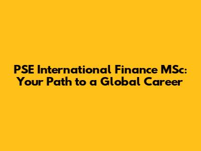PSE International Finance MSc: Your Path To A Global Career