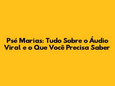 Psé Marias: Tudo Sobre O Áudio Viral E O Que Você Precisa Saber