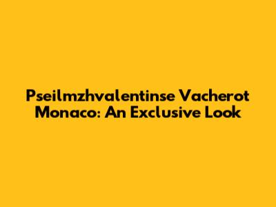 Pseilmzhvalentinse Vacherot Monaco: An Exclusive Look