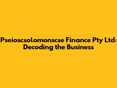 Pseioscsolomonscse Finance Pty Ltd: A Deep Dive