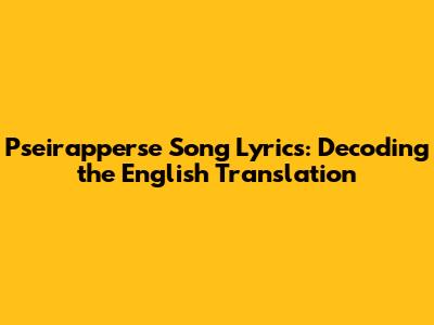 Pseirapperse Song Lyrics: Decoding The English Translation