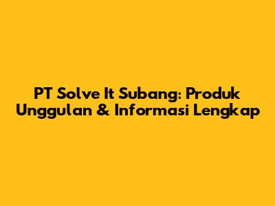 PT Solve It Subang: Produk Unggulan & Informasi Lengkap