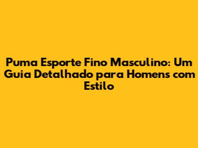 Puma Esporte Fino Masculino: Guia Completo E Dicas De Estilo