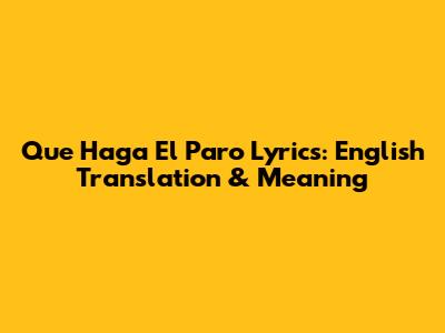 Hey guys! Ever found yourself vibing to a song in Spanish and wondering what it really means? Today, we're diving deep into the lyrics of "Que Haga El Paro," breaking down the meaning and providing an English translation. Whether you're a language enthusiast, a music lover, or just curious, you're in the right place! Let’s get started and unravel the magic behind this song.