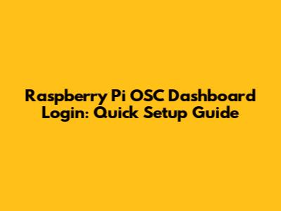 Raspberry Pi OSC Dashboard Login: Quick Setup Guide