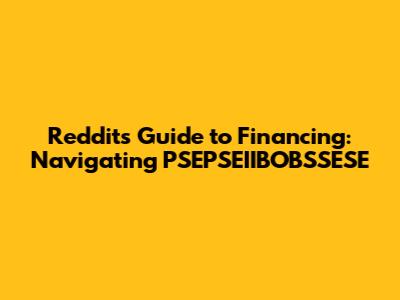 Hey everyone! Ever stumbled upon the term PSEPSEIIBOBSSESE and found yourself scratching your head? Well, you're not alone! It's a bit of a mouthful, right? But don't worry, we're going to break it down and talk about how it relates to financing, especially in the context of what you might find on Reddit. This isn't some super-secret code – we're talking about the various financial discussions and resources available on the platform. Think of it as your one-stop shop for understanding how folks are using Reddit to navigate the often-complex world of financing. We'll be exploring everything from personal finance tips and tricks to investment strategies, all through the lens of what's buzzing on Reddit. It's all about making sense of the information overload and finding the gems that can actually help you make smarter financial decisions. So, grab your favorite beverage, get comfy, and let's dive into the world of Reddit and financing! We'll cover what PSEPSEIIBOBSSESE could mean to you, how to find the best financing advice on Reddit, and how to avoid the common pitfalls. It's time to become a savvy Redditor when it comes to your money!