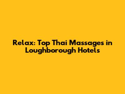 Relax: Top Thai Massages In Loughborough Hotels