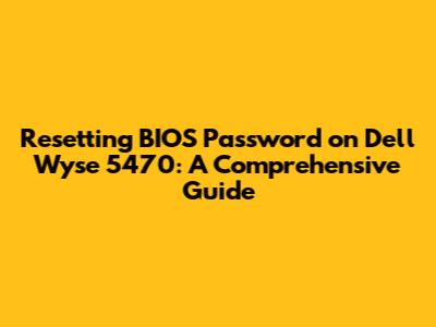 Resetting BIOS Password On Dell Wyse 5470: A Comprehensive Guide