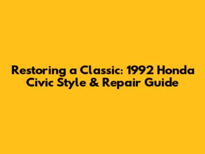 Restoring A Classic: 1992 Honda Civic Style & Repair Guide