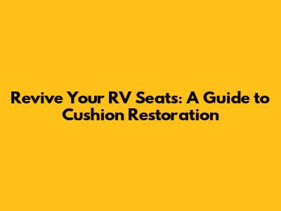 Revive Your RV Seats: A Guide To Cushion Restoration