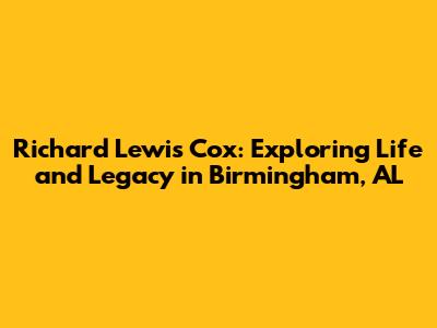 Richard Lewis Cox: Exploring Life And Legacy In Birmingham, AL