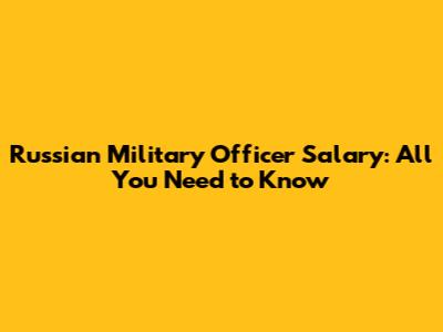 Russian Military Officer Salary: All You Need To Know