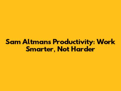 Sam Altman's Productivity: Work Smarter, Not Harder