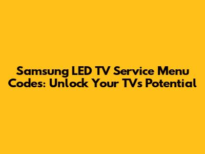 Hey guys, ever wondered what's lurking behind the scenes of your Samsung LED TV? Maybe you've heard whispers about a 'service menu' and how it can unlock hidden features or help troubleshoot tricky issues. Well, you're in the right place! Today, we're diving deep into the Samsung LED TV service menu code world. It's like having a secret key to your TV's inner workings. We'll break down what it is, why you might want to access it, and crucially, how to get there without causing any digital drama. So, grab your remote, get comfy, and let's explore the fascinating, and sometimes quirky, service menu of your Samsung TV. It’s not as complicated as it sounds, and with a little guidance, you'll be navigating it like a pro in no time. Remember, though, this is a powerful tool, so it's always best to proceed with caution and a clear understanding of what you're doing. We’re here to make that process as smooth as possible for you!