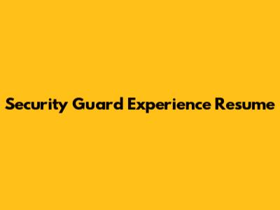 Sample Security Guard Resume Template