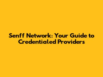 Senff Network: Your Guide To Credentialed Providers