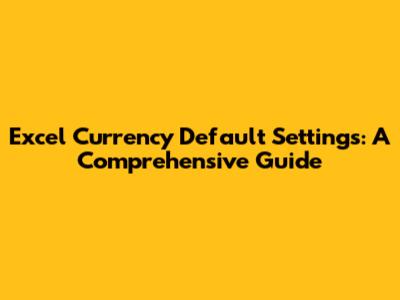 So there you have it, everything you need to know about Excel currency default settings. Happy spreadsheeting!