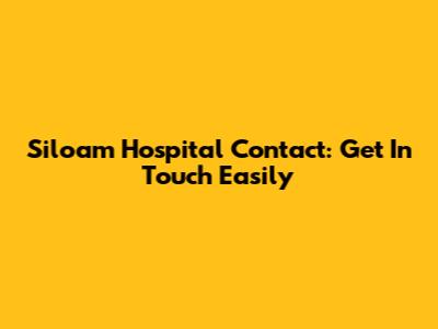 Siloam Hospital Contact: Get In Touch Easily