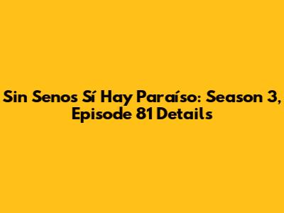 Sin Senos Sí Hay Paraíso: Season 3, Episode 81 Details
