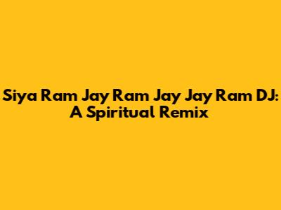 Siya Ram Jay Ram Jay Jay Ram DJ: A Spiritual Remix