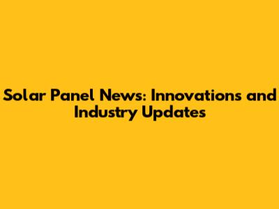 Solar Panel News: Innovations And Industry Updates