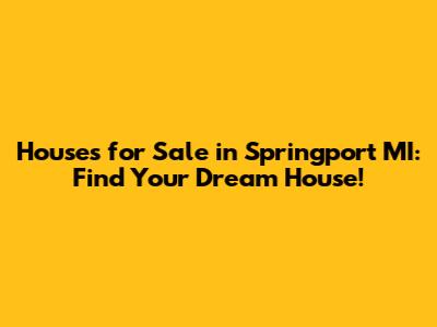 Springport MI Homes For Sale: Find Your Dream House!