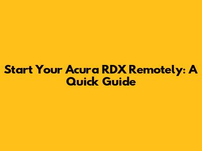 Start Your Acura RDX Remotely: A Quick Guide