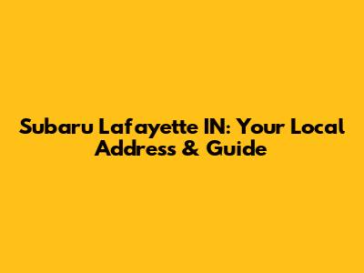 Subaru Lafayette IN: Your Local Address & Guide