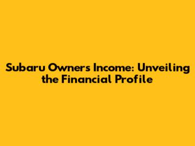 Subaru Owners' Income: What You Need To Know