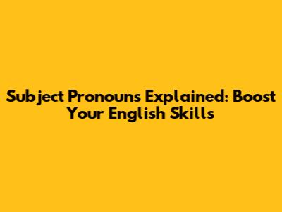 Subject Pronouns Explained: Boost Your English Skills