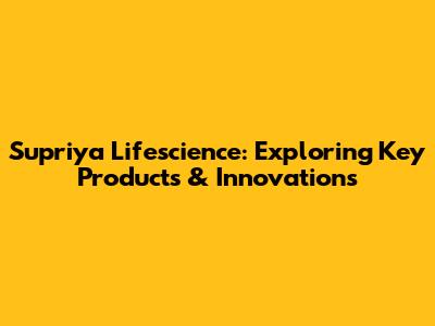 Supriya Lifescience: Exploring Key Products & Innovations