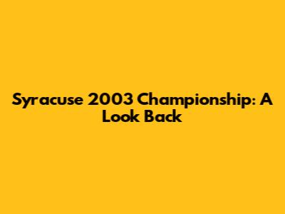 Syracuse 2003 Championship: A Look Back
