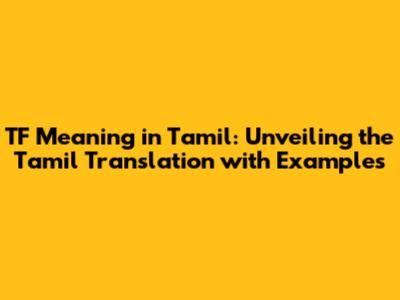 TF Meaning In Tamil: Unveiling The Tamil Translation With Examples