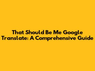 That Should Be Me: Google Translate Guide