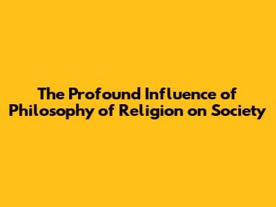 The Impact Of Philosophy Of Religion On Society