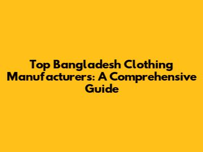 Top Bangladesh Clothing Manufacturers: A Comprehensive Guide