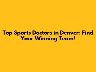 Top Sports Doctors In Denver: Find Your Winning Team!