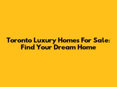 Toronto Luxury Homes For Sale: Find Your Dream Home
