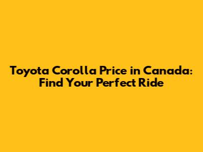 Toyota Corolla Price In Canada: Find Your Perfect Ride