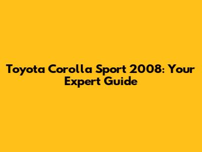 Toyota Corolla Sport 2008: Your Expert Guide