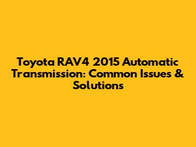 Toyota RAV4 2015 Automatic Transmission: Common Issues & Solutions